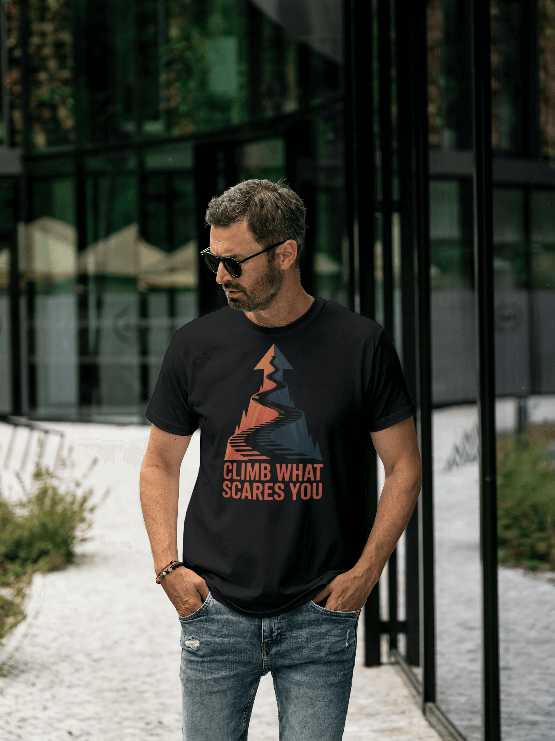 Dieses Shirt ist nichts für Komfortzonen-Fans. „CLIMB WHAT SCARES YOU“ erinnert dich daran, genau da hinzugehen, wo die Hände schwitzig werden, die Stimme im Kopf lauter wird – und Wachstum beginnt. Ob steile Wand, neuer Job, ehrliches Gespräch oder erster Trailrun: Wenn es dir Respekt einjagt, ist es wahrscheinlich genau das Richtige.
