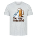 Dieses Shirt bringt die perfekte Balance auf den Punkt: Erst die Piste, dann die Party – aber die Party immer. „SKI FIRST, APRÉS ALWAYS" steht für alle, die ihre Tage am Berg in vollen Zügen genießen: morgens die ersten Schwünge ziehen, abends die letzten Runden feiern.